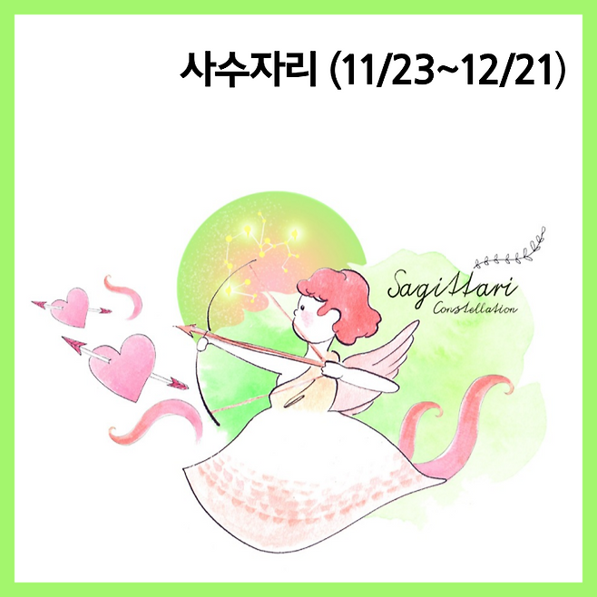 2025년 사수자리 연애운은 같은 취미를 가진 상대방과의 관계가 돈독해지는 해입니다. 새로운 사랑을 시작하고 싶다면, 외모가 취향이라도 감각이 맞지 않는 상대에게 억지로 맞추지 않는 것이 좋습니다. 대화할 때 재미있게 느끼는 포인트가 비슷한 사람과의 시간이 사랑으로 발전하겠군요. 3월이나 11월에 좋아하는 것에 관한 이벤트가 있다면 한번 찾아가 보는 것도 추천합니다.