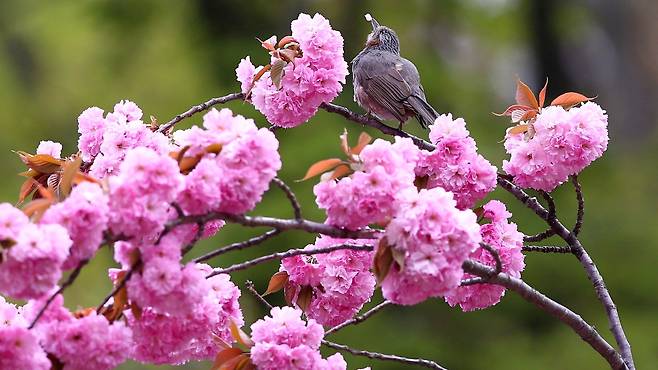 4월은 겹벚꽃이 절정을 향해 달려가는 시기다. 일반 벚꽃이 지고 난 뒤 피어나는 겹벚꽃은 한층 더 풍성한 꽃잎으로 깊이 있는 봄 풍경을 만든다.