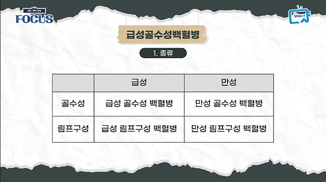 급성골수성백혈병의 원인과 증상, 치료법! 서울대학교병원 혈액종양내과 신동엽교수의 설명 지금바로 확인하실 수 있습니다.