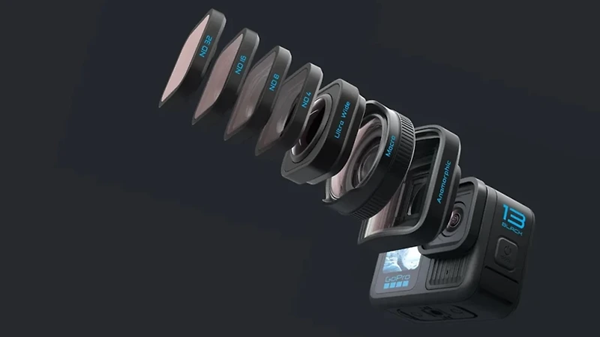 가장 특별한 점은 고프로 사상 최초의 렌즈 교환식 액션캠이라는 것. 이 제품은 다양한 렌즈 모드를 지원해 촬영 환경에 맞게 렌즈를 교체할 수 있다. 대표적인 모드는 매크로 렌즈(클로즈업 촬영), 울트라 와이드 렌즈(177˚ 시야각), ND 필터(자연스러운 모션 블러), 아나모픽 렌즈(화면 비율을 21:9로 변경)이다. 이외에도 다양한 특수 렌즈 모드가 있으며, 렌즈를 교체할 때마다 카메라가 자동으로 이를 인식하고 설정을 조정해 준다.