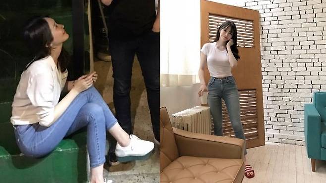 글래머러스하고 건강미 넘치는 몸매로 변신한 강민경은 타이트하고 몸매를 부각하는 패션을 소화하기 시작했습니다. 주로 스키니진에 티셔츠를 매치해서 흰 티에 청바지만 입어도 예쁘다는 미녀의 대명사가 되었지요.