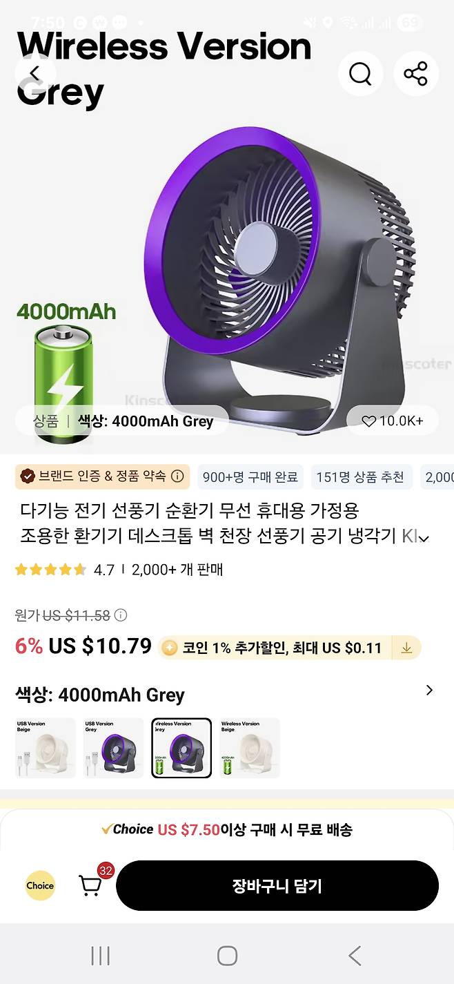 US $9.86 | 다기능 전기 선풍기 순환기 무선 휴대용 가정용 조용한 환기기 데스크톱 벽 천장 선풍기 공기 냉각기 KINSCOTER Multifunctional Electric Fan Circulator Wireless Portable Home Quiet Ventilator Desktop Wall Ceiling Fan Air Cooler