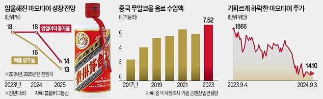 중국 경기 침체로 수요가 급감하면서 웃돈까지 붙었던 마오타이 판매가는 급락했다.