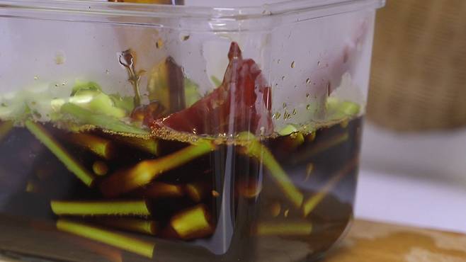 오래 드실 분이라면 2일 후에 양념물만 따로 빼서 팔팔 끓인 후 완전히 식히세요. 그리고 다시 마늘쫑에 붓고 냉장숙성 시켜 드시면 된답니다.