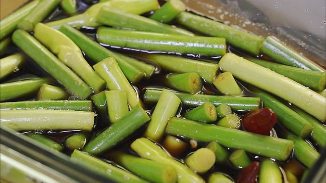 오래 드실 분이라면 2일 후에 양념물만 따로 빼서 팔팔 끓인 후 완전히 식히세요. 그리고 다시 마늘쫑에 붓고 냉장숙성 시켜 드시면 된답니다.