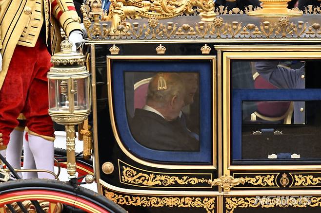 윤 대통령 부부는 황금마차를 타고 버킹엄궁으로 이동했다. 총 7대의 마차 중 첫 번째 마차에는 윤 대통령과 찰스 3세 국왕이 탑승했다. 두 번째 마차에는 김 여사와 커밀라 왕비가 탔다. 대규모 기마 부대의 호위 속에 1.6㎞가량 마차 행진이 이어졌다.