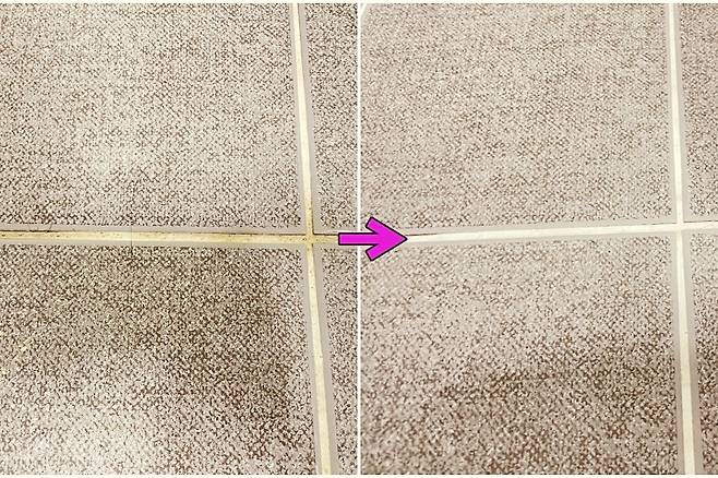 확인해 보면 줄눈에 찌든 때가 말끔히 제거됐습니다.