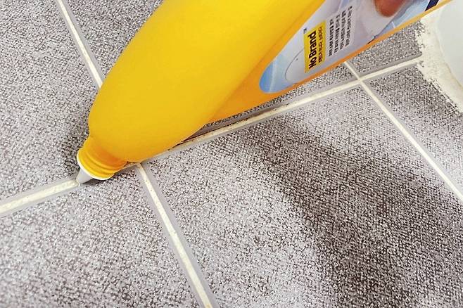 욕실 바닥 줄눈에 시커먼 찌든 때가 생겼는데요. 그냥 수세미로 닦아서는 안 지워져요