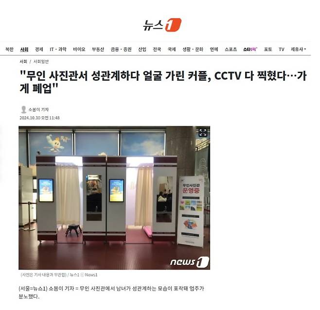 무인 사진관에서 남녀가 성관계하는 모습이 포착돼 업주가 분노했다.