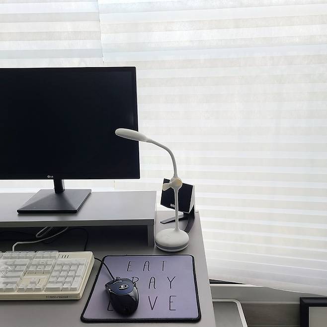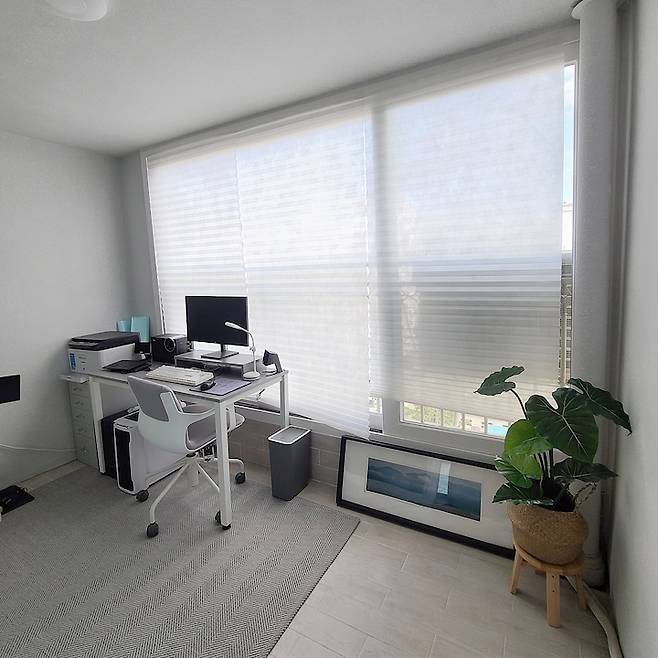 베란다이다 보니 봄, 가을은 너무 편한게 사용할수 있지만 한겨울에는 추움감이 있어 이동식 히터를 틀고 작업하고 있었어서 계절에 따른 큰 불편은 없어요. 요근래 코로나로 신랑의 재택근무가 많아 지다보니 이런 공간을 만들어 홈피스 느낌도 나고 좋더라구요 :)