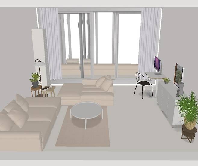 가구를 배치하기 전 어플을 통해서 가구 배치 시물레이션을 해보았어요!!(얼추 비슷한가요??^^)