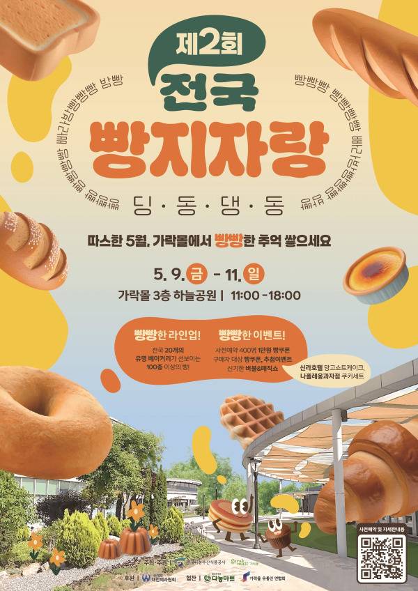 축제에서는 버블&매직쇼, 삼행시 이벤트, 빵 풍선 오마카세, 기념품 증정, 행운 추첨 등 다양한 참여형 이벤트도 진행된다. 또 가락몰에서 3만원 이상 구매 시 5천원 빵 쿠폰 제공 등 풍성한 혜택도 마련돼 있다.