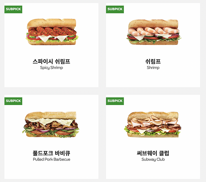 우선 쉬림프 샌드위치인데요. 241칼로리로 4개 메뉴 중 가장 저칼로리이며 당 함량 또한 7.9g로 가장 낮습니다.
