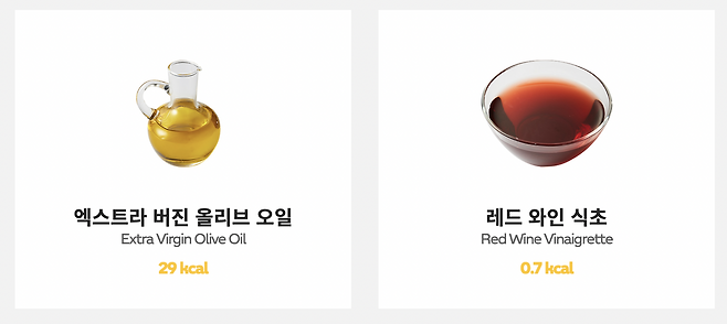 다이어트에 적합산 소스는 오일이나 식초 베이스의 소스입니다. 올리브 오일과 소금, 후추만 뿌리는 것이 가장 깔끔한 조합이고 레드와인 식초 정도로 풍미를 더해주는 것도 좋습니다.