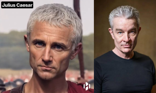 줄리어스 시저는 배우 제임스 마스터스와 닮아있는데, 영화 속 줄리어스 시저를 연기한 모습이라고 해도 될 정도로 비슷한 생김새를 하고 있다.
