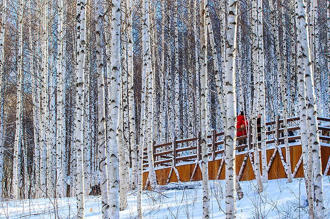 겨울철에는 하얀 눈과 자작나무의 흰 껍질이 어우러져 마치 동화 속에 들어온 듯한 풍경을 연출합니다.