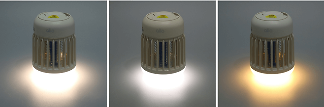 윗면 버튼의 왼쪽 전원 표시 부분을 누르면 돔 부분의 무드등 램프가 켜진다. 무드등 램프는 버튼을 누를 때마다 웜 옐로우와 웜 화이트, 웜 라이트 등 세 가지 색상으로 바뀌기 때문에 원하는 색상으로 선택해서 사용할 수 있다.