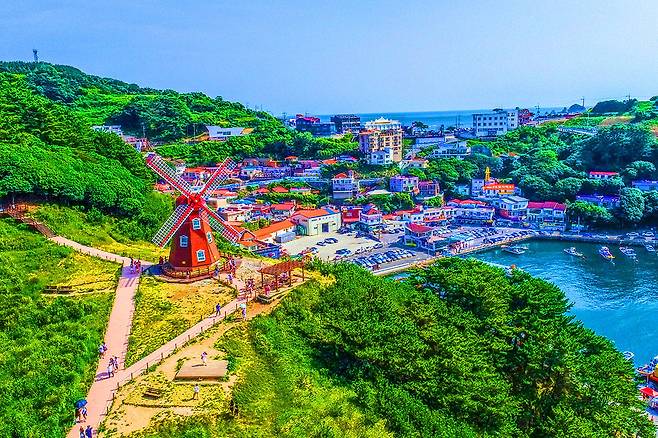 바람의언덕은 도장포마을에 위치한 언덕으로 정상에 오르면 아기자기한 마을과 바다 풍광을 한눈에 조망할 수 있습니다. 도장포 유람선 선착장이 있어 외도와 해금강 관광을 할 수 있고, 잔디가 깔린 민둥산 ‘바람의언덕’을 거닐며 부모님과 산책하기 좋습니다.
