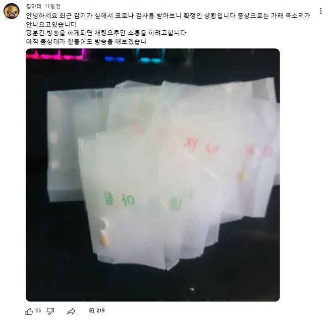 또한 그는 11일 "코로나에 걸려 당분간 방송을 하기 힘든 상황"이라고 말한 바 있습니다.
