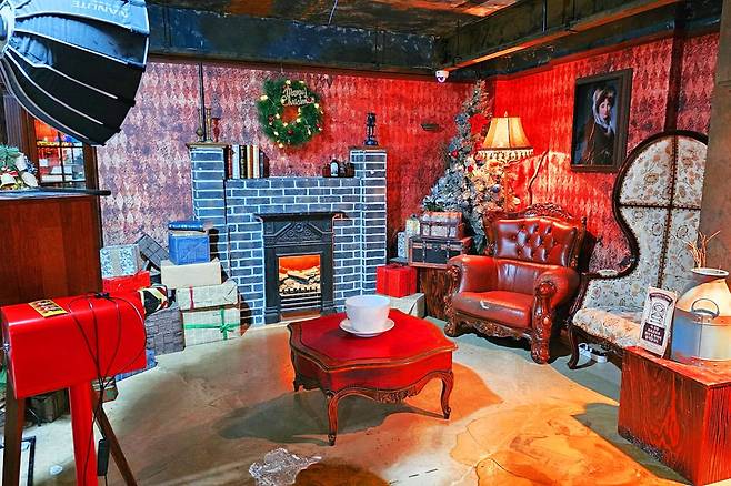 2층은 해리포터 영화 속 호그와트 기숙사를 연상시키는 독특한 공간입니다. 곳곳에 놓인 마법 책들과 트렁크, 그리고 캔들 장식은 해리포터 세계관을 생생하게 느낄 수 있게 합니다.