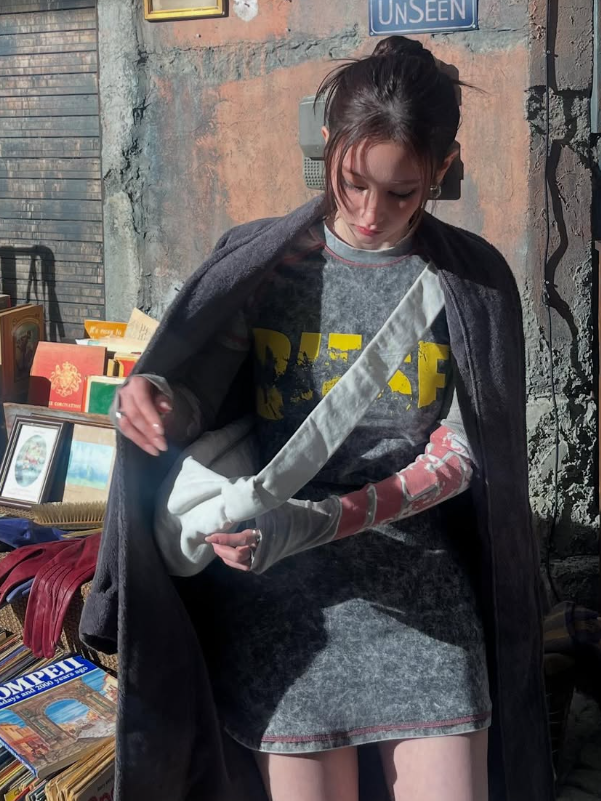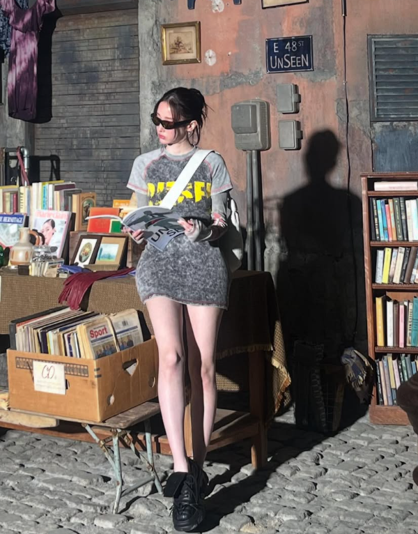 거친 워싱이 매력적인 빈티지 무드의 그래픽 티셔츠는 전종서 님의 쿨한 분위기와 완벽한 시너지를 자랑했어요. 컬러감과 텍스처에서 자연스럽게 녹아든 레트로 감성은, 툭 걸친 듯하지만 스타일리시한 연출의 정석을 보여줬죠.