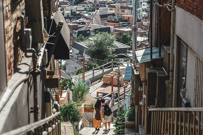 좁고 구불구불한 골목길을 따라 걷다 보면, 마치 시간이 멈춘 듯한 옛 서울의 정취를 느낄 수 있는 것이 특징인데요. 일본식 가옥과 서양식 주택이 묘하게 어우러진 풍경은 오직 해방촌에서만 볼 수 있는 특별한 점이라고도 할 수 있죠. 높은 계단 오르막 또한 그 특징을 뒷받침하는 것 같습니다.