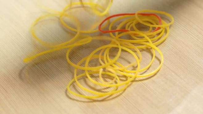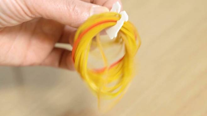 고무줄의 경우 잘 모아 빵클립에 끼워 넣으세요. 그러면 더 이상 서로 꼬이지 않고 하나씩 꺼내 사용할 수 있답니다.