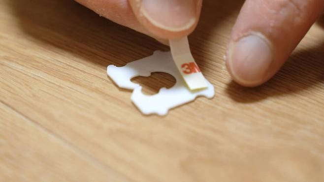 이럴 땐 양면테이프를 적당하게 잘라 빵클립에 붙이세요. 그리고 양면테이프를 이용해 자주 사용하는 책상 옆 부분에 붙여 줍니다.