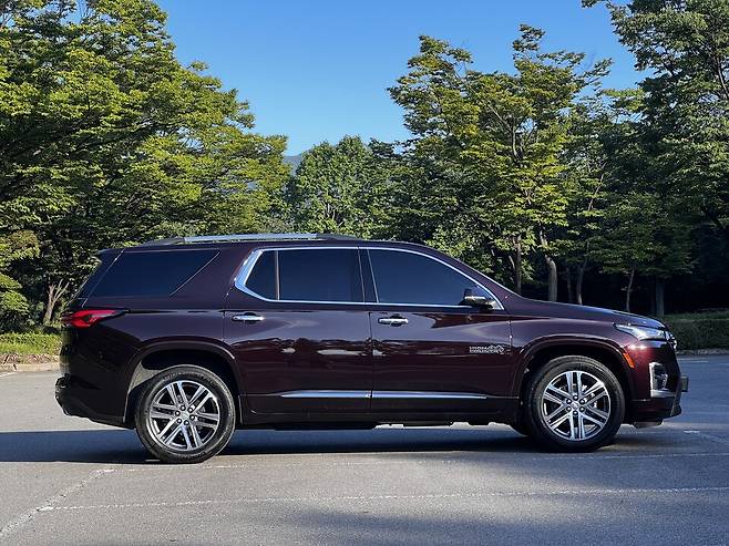 이는 쉐보레의 7인승 준대형 SUV인 '트래버스'로, 강인한 인상의 디자인과 활용성 높은 실내공간은 물론 뛰어난 주행 성능까지 갖춰 많은 사랑을 받고 있다.