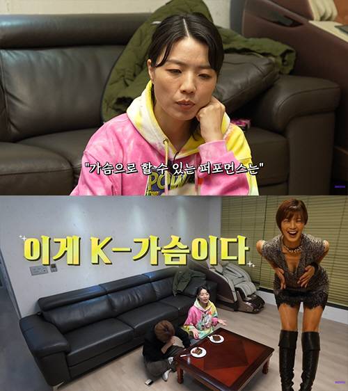 송은이는 "내가 오프닝에 가슴춤 추는 거 봤냐"라고 물었고, 안영미는 "봤다. 근데 그걸 또 CG로 가려놨더라"라고 답했다.