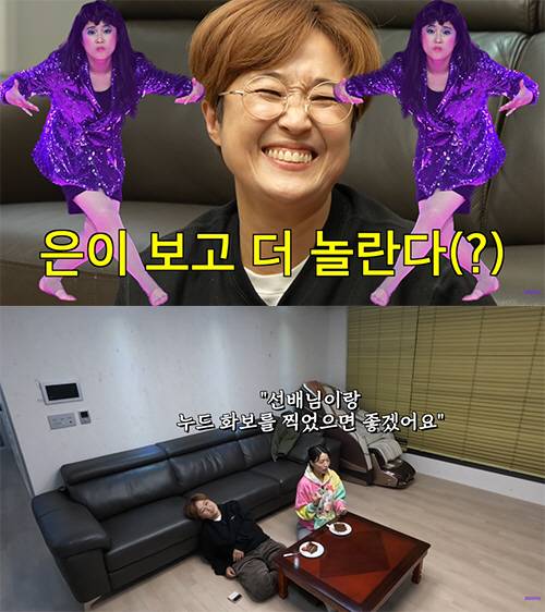이에 송은이는 "그렇게 보잘것없는 거를"이라며 농담했고, 안영미는 "그래서 선배님을 치트키로 생각했다. 관객들이 한국을 얕잡아 볼 때 쯤 선배님이 등장하는 거다"며 "선배님이랑 누드 화보도 찍었으면 좋겠다. 존 레논 화보처럼"이라고 말해 송은이를 질색하게 만들었다.