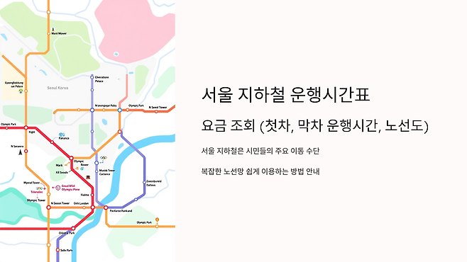 서울 지하철 운행시간표 요금 조회 (첫차, 막차 운행시간, 노선도)