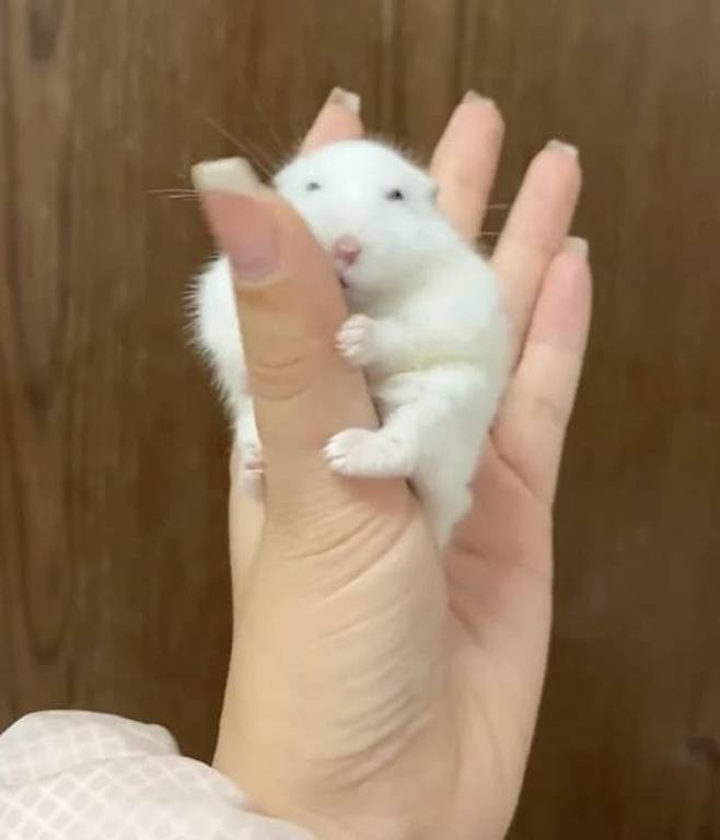 공개된 사진 속에서 햄스터는 집사의 엄지 손가락을 붙잡고 기대서 자는 것 마냥 눈을 살포시 감고 있는 모습을 하고 있었죠.