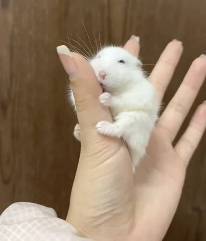 공개된 사진 속에서 햄스터는 집사의 엄지 손가락을 붙잡고 기대서 자는 것 마냥 눈을 살포시 감고 있는 모습을 하고 있었죠.