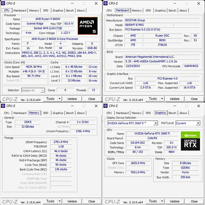 BIOSTAR B850MT-E PRO는 순정 상태에서의 안정성과 발열 제어, 확장성에 초점을 맞춘 제품으로, 오버클럭보다는 기본 성능을 안정적으로 운용하려는 사용자에게 적합합니다. 9800X3D와 같은 고성능 CPU의 성능을 안정적으로 끌어낼 수 있는 메인보드라 이번 테스트에서 별다른 설정없이 순정상태로 진행을 했습니다.