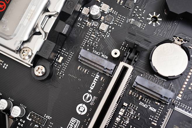 M.2 슬롯에는 기본 방열판이 탑재되어 있으며, 고속 SSD 사용 시 발생하는 열을 효과적으로 분산시켜줍니다. PCIe 5.0 SSD 사용 시에도 안정적인 온도를 유지할 수 있습니다.
