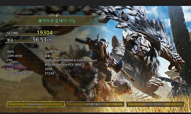 그외 인게임 벤치마크가 있는 몬스터헌터와일즈와 포르자호라이즌 벤치마크에서도 정상범위 내 결과값이 나왔습니다.