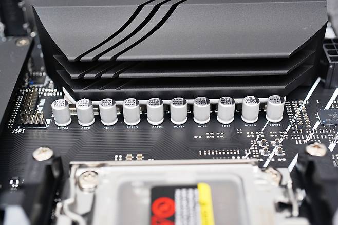 전원부는 10페이즈 Dr.MOS 구성이 적용되어 있으며, 대형 알루미늄 방열판을 통해 발열 제어 효율을 높였습니다. 전압 드롭을 최소화하면서 안정적인 전력 공급이 가능해 고전력 프로세서에서도 안정적인 동작을 유지합니다.