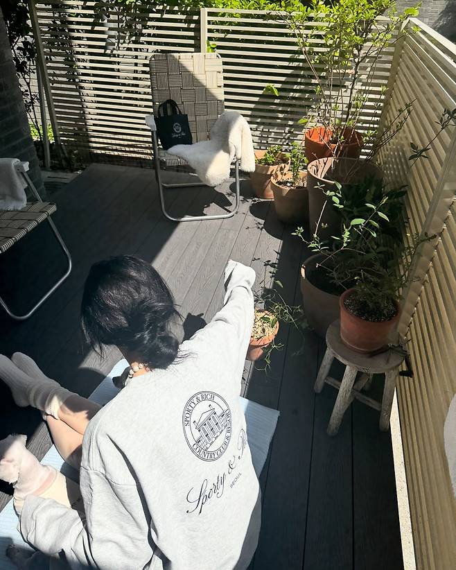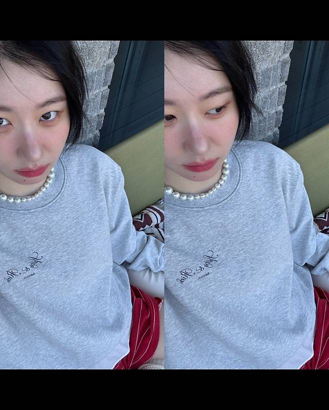 채령은 무심한 듯 내추럴한 스타일의 그레이 맨투맨과 블랙 쇼츠를 매치해 편안하면서도 센스 있는 데일리룩을 완성했는데요.