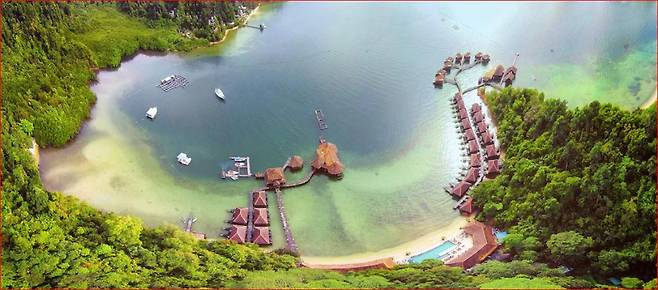 한창 게임에 몰입하는 출연진들 덕분에 웃음 터지는 와중에도 한눈에 시선을 사로잡은 장면이 있었죠.바로 그림 같은 풍경 속, 럭셔리한 수상 리조트! 그곳이 바로 오늘 소개할 가야나 마린 리조트(Gayana Marine Resort)다.