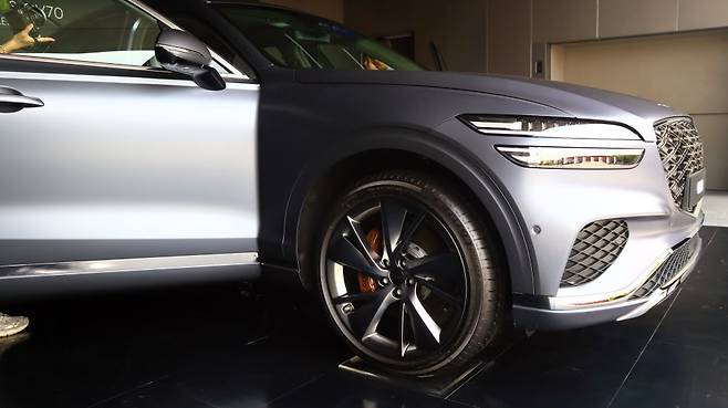 한편, 제네시스 GV80에는 파생형 모델인 '쿠페'가 있다면 제네시스 GV70에는 'GV70 스포츠 패키지'가 존재하는데 GV70에 역동적인 내외장 요소를 더해 스포티한 이미지를 극대화한 'GV70 스포츠 패키지'는 전면부에 '더블 레이어드 지-매트릭스' 패턴의 크레스트 그릴과 확장된 공기 흡입구(에어 인테이크)를 적용해 스포츠 SUV 이미지를 강조 했습니다.