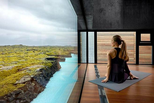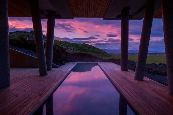 객실마다 한쪽 벽은 바닥에서 천장까지 전체 창문으로 만들어졌다. 파스텔 블루 빛 석호와 실시간으로 변하는 북극광을 집에서 TV 보듯 편안하게 감상해보자. 아이슬란드를 오가는 항공편 대부분이 도착하는 케플라빅 공항에서 차로 20분 거리에 위치해 아이슬란드 여행의 마지막 밤을 이곳에서 보내는 이들이 많다.