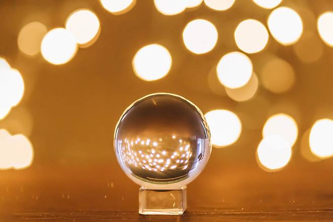 투명한 수정구슬은 빛을 받으면 자연스럽게 반짝여서 시선을 잠깐 머물게 합니다.