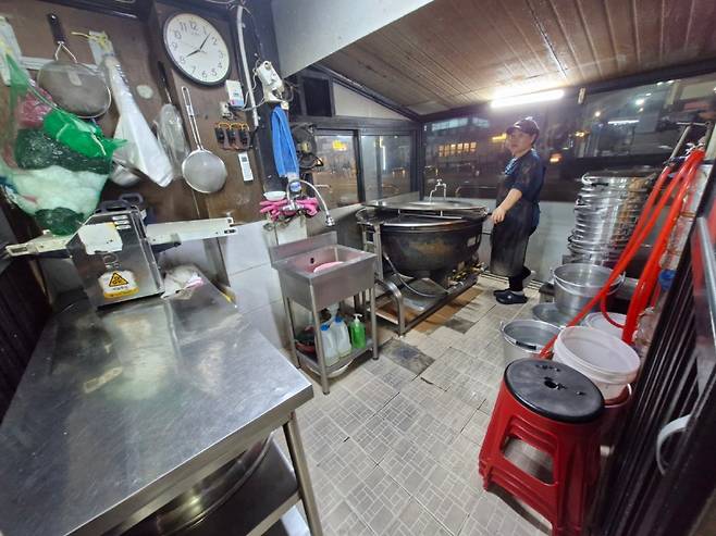 커다란 솥단지에서는 사골국을 끓이고 있다.