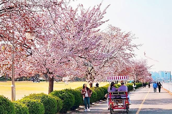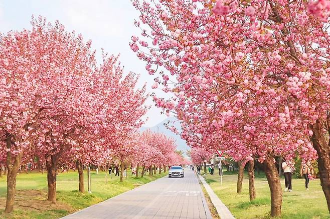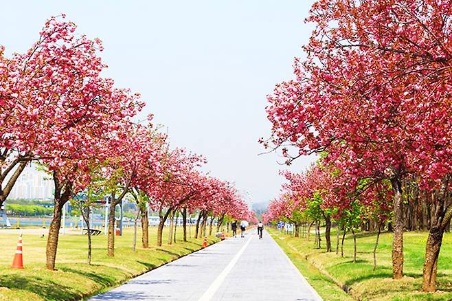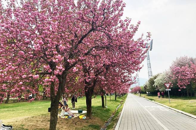 벚꽃이 피었다 지고 나면 아쉬움이 남기 마련이다. 봄의 절정을 놓쳤다고 생각할 즈음, 경기도 하남의 미사경정공원에서는 또 다른 벚꽃이 피기 시작한다.