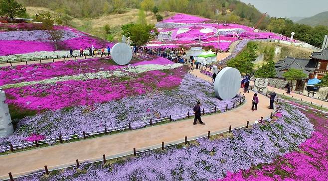 이 시기에 맞춰 매년 꽃잔디 축제도 열린다. 방문객들은 꽃잔디 사이를 거닐며 봄날의 여유를 만끽할 수 있고, 다양한 이벤트와 체험 프로그램도 함께 즐길 수 있다. "산청에서 꼭 가봐야하는 곳"이라는 말이 나올 만큼 사진 명소로도 입소문이 났다. 분홍빛 배경과 조각 작품, 그리고 푸른 하늘이 어우러져 어느 방향에서 찍어도 인상적인 사진을 건질 수 있다.