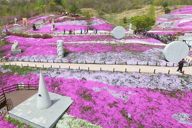 이 공원이 특히 주목받는 시기는 4월에서 5월 사이이다. 봄이 되면 넓은 잔디 대신 선명한 분홍빛 꽃잔디가 공원 전역을 덮기 때문이다. 완만한 경사면을 따라 꽃잔디가 펼쳐지며, 마치 분홍 융단을 깔아놓은 듯한 장면이 연출된다. 그 위로 하얀 조각품들이 대비를 이루며 서 있어 예술과 자연이 함께 완성하는 풍경 명소로 알려져 있다.