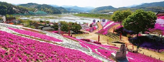 공원은 낮은 경사로 조성돼 있어 큰 문제 없이 산책하기 좋다. 완만한 오르막을 따라 걷다 보면 바로 앞에 흐르는 경호강이 한눈에 들어오면서 강과 산, 꽃잔디가 어우러진 풍경에 여유를 만끽할 수 있어 가족 여행으로도 부담 없이 즐길 수 있다.