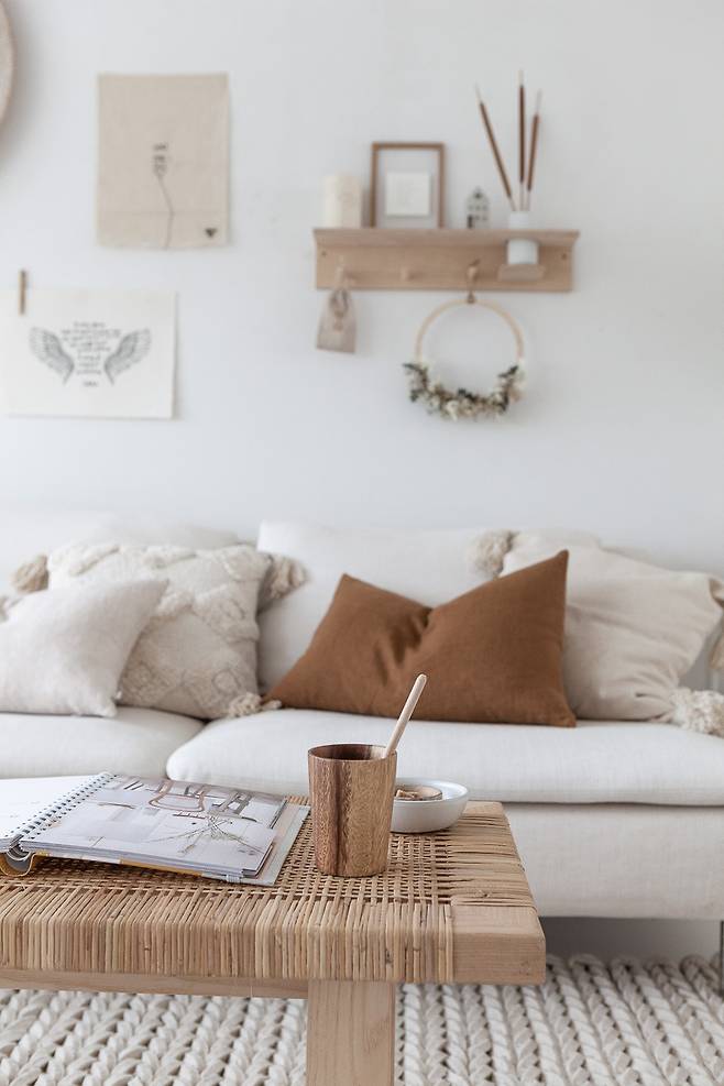 전체 인테리어가 화이트 톤일 때, 우드 소품 하나만으로도 공간의 분위기가 확 달라진다. 따뜻한 색감의 원목은 차가운 인상을 중화시키며 계절감 있는 연출이 가능하다. 특히 가을·겨울 시즌에는 우드와 패브릭을 활용한 따뜻한 무드가 인기다.