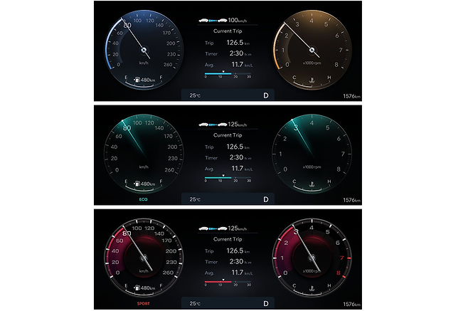 업데이트를 통해 현대차는 기존 단순 바늘 디자인이었던 클래식 테마 그래픽 스타일에 명암을 추가, 세밀함과 디테일을 강화한다. 폰트 디자인도 개선해 시인성을 향상시킨다.